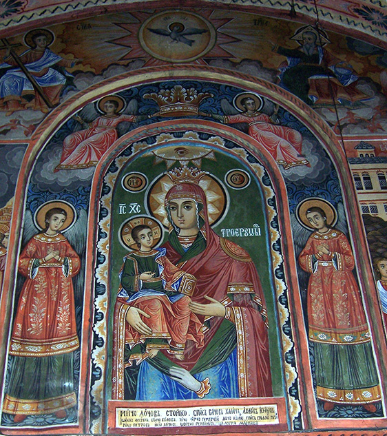 Photo descriptions: (1) Empress Zoe mosaic, Hagia Sophia, Istanbul; (2) stained glass, Immanuel Lutheran Church, Olivette, Missouri, USA; (3) mural in the church of the Troyan Monastery, near Troyan, Bulgaria.